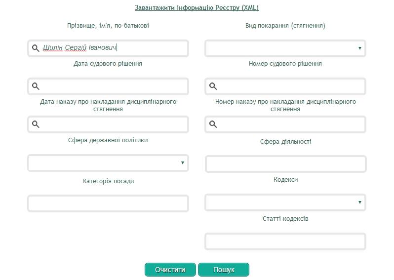 Поиск информации осуществляется по фамилии (основное), имени, отчеству, что очень неудобно, так как посмотреть всех коррупционеров города, района или области нет возможности (нет поля региона). Единственным способом посмотреть список коррупционеров – это загрузить весь реестр в формате (XML), а далее по поиску на странице выбирать лиц, подходящих под определенное условие.