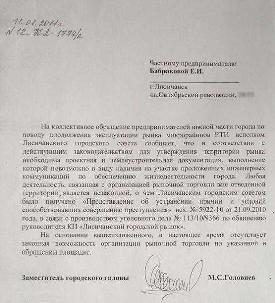 Несанкционированное место торговли в южной части города – проблемный вопрос уже много лет. Причем вопрос многогранный, неоднозначный и сложнорешаемый. Были в его истории и силовые методы, и митинги, и уголовные дела. По-своему недовольны многие - местные жители, сами предприниматели, контролирующие органы, городская власть.Жители района недовольны тем, что это место трудно назвать словом «рынок» или применить к нему определение «цивилизованное» или «благоустроенное». Предприниматели - потому что не хотят покидать привычные места торговли, переходить на новый рынок и принимать условия работы на нем. Контролирующие органы - поскольку этот объект портит облик города, на нем не выполняются санитарные нормы, а под его территорией проходят инженерные коммуникации. Местные органы власти тоже недовольны - соглашаются, что этот вопрос сложный и проблемный. Так, в отделе по работе с письмами и обращениями граждан Лисичанского горсовета нам продемонстрировали многолетнюю переписку по проблеме рынка в районе РТИ - папки с заявлениями жителей, предпринимателей, ответы руководства города, служб и правоохранительных органов (наиболее яркие из них можете прочитать в приложении к этому материалу). В горотделе милиции также дают информацию о проделанной работе по борьбе с несанкционированной торговлей. И вроде все хорошо. Но странное ощущение, что основной вопрос задать-то и некому. Предлагаем поддержать тему и продолжить обсуждение материала в комментариях.