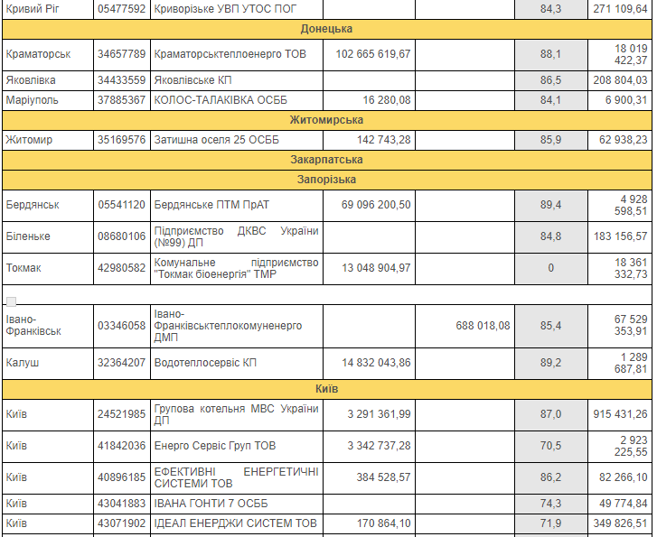 Нафтогаз завчасно публікує перелік критичних боржників, щоб мешканці кожної області могли перевірити, чи входить місцеве підприємство до їх числа.