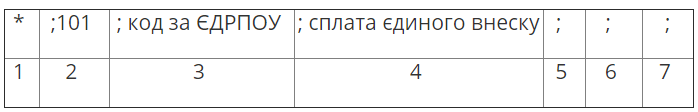 2 – код виду сплати ("101" – Сплата суми єдиного внеску);