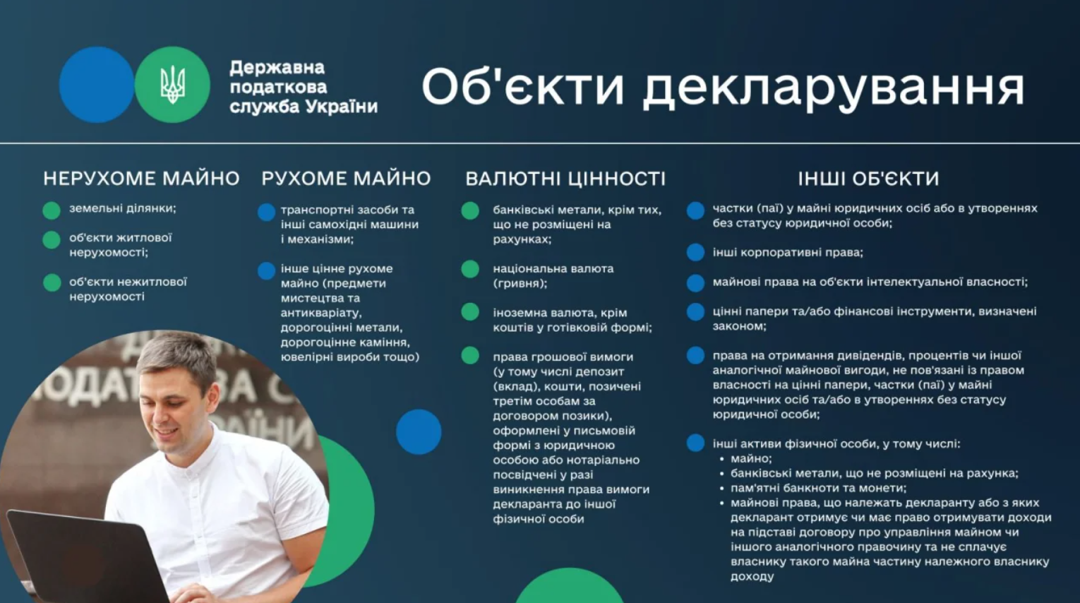 Об'єктами декларування можуть бути земельні ділянки, нерухомість, транспорт, коштовності, антикваріат, національна та іноземна валюта, цінні папери і т.п. Готівкові кошти перед декларуванням потрібно розмістити на рахунку в банку.