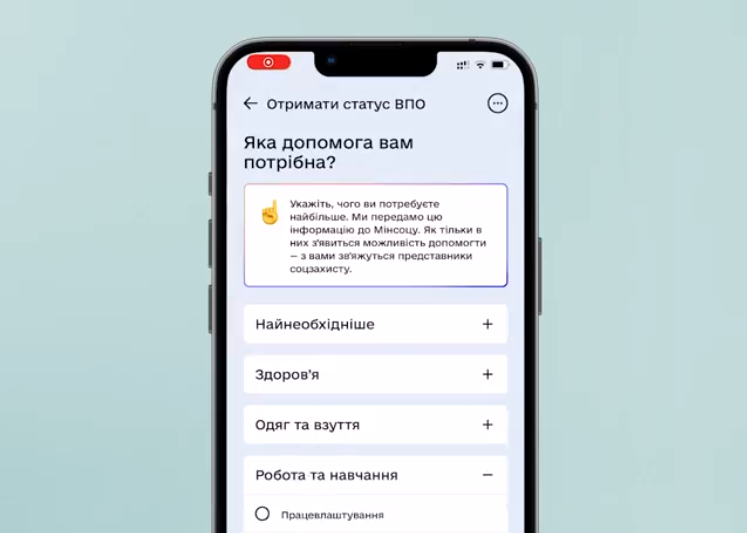 Українці, що були вимушені евакуюватися з регіонів, де ведуться бойові дії до більш безпечніших місць України, тепер можуть отримати статус ВПО та подати заявку на щомісячну виплату через застосунок Дія.