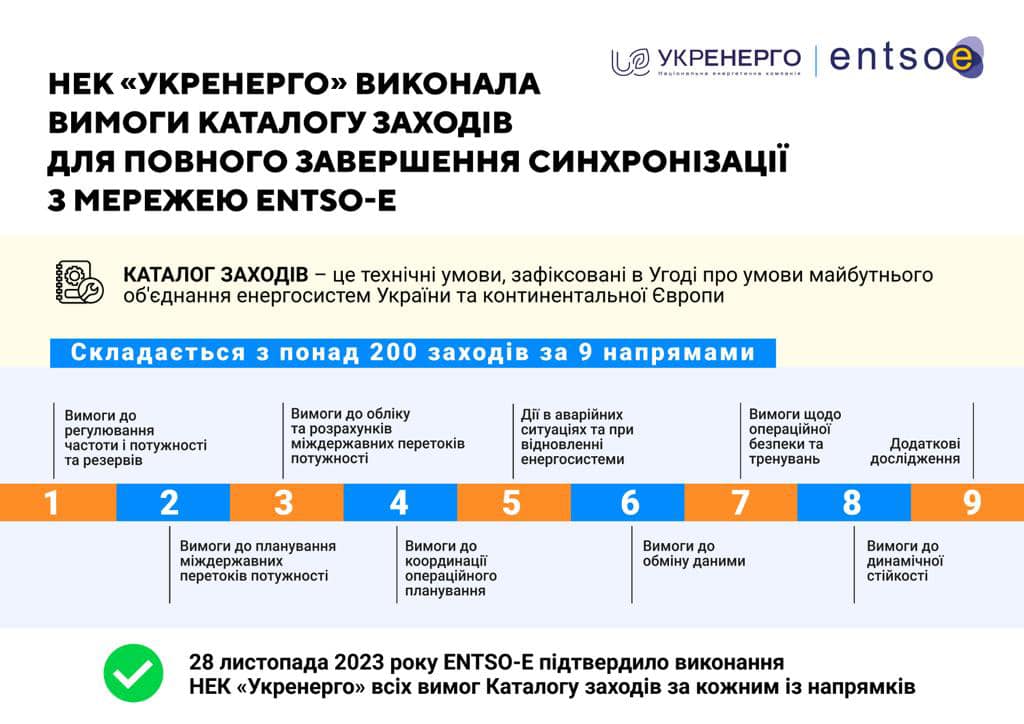 За його словами, Об'єднання операторів енергомереж континентальної Європи ENTO-E визнало, що "Укренерго" виконало ключові технічні заходи, необхідні для постійної синхронізації української та європейської енергосистем.