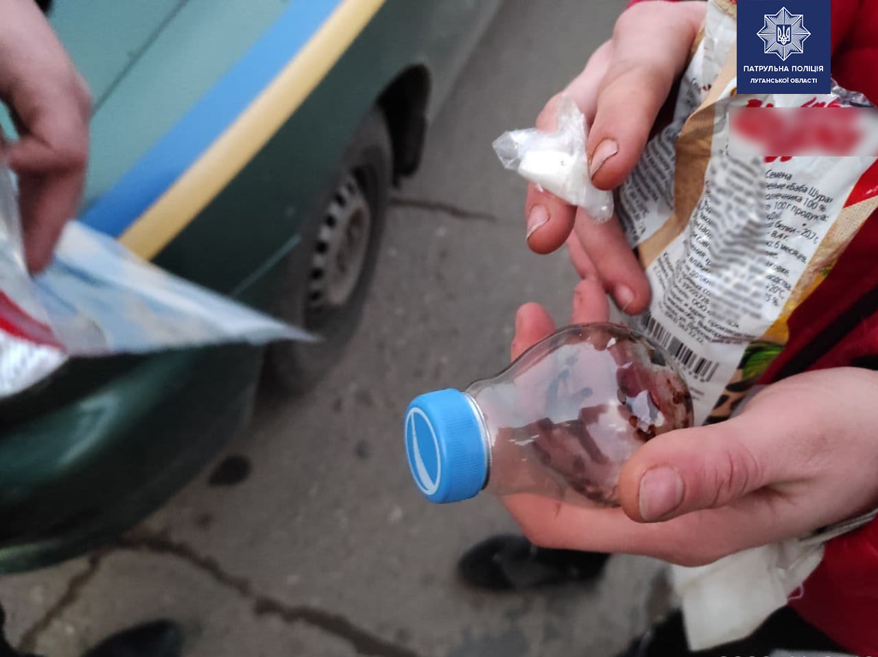 На одній з вулиць Лисичанська патрульні виявили дівчину, яка тримала ймовірно наркотичну речовину в пачці насіння.