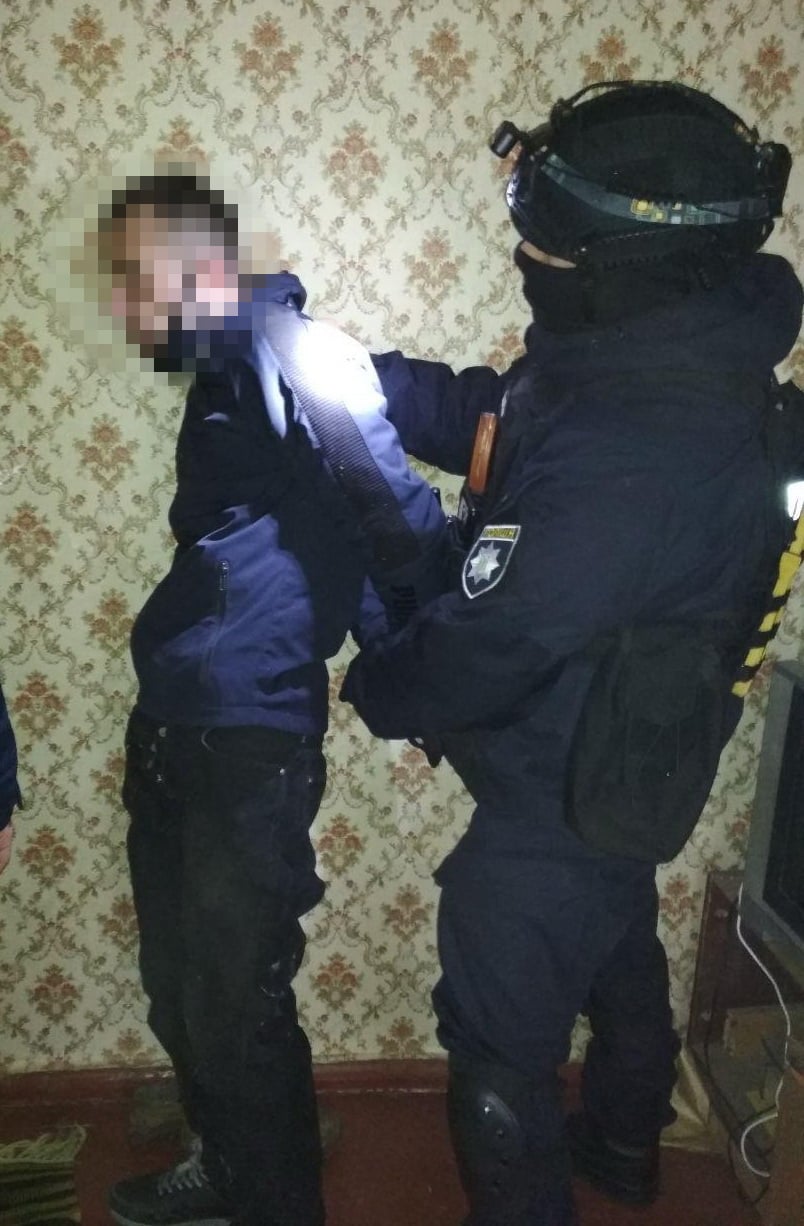 Під час проведення санкціонованого судом обшуку за місцем його перебування, було виявлено та вилучено саморобний пристрій для відстрілу патронів і наркотична речовина – конопля. Крім того, було виявлено та вилучено знаряддя вбивства – ніж, який заздалегідь був приготовлений підозрюваним для скоєння злочину.