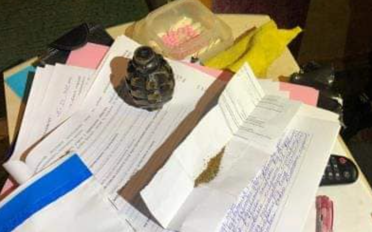 В ході проведення санкціонованого судом обшуку правоохоронці виявили та вилучили корпус гранати "Ф-1", патрони калібру 5,45 мм та канабіс. Вилучене направлено на експертизу.