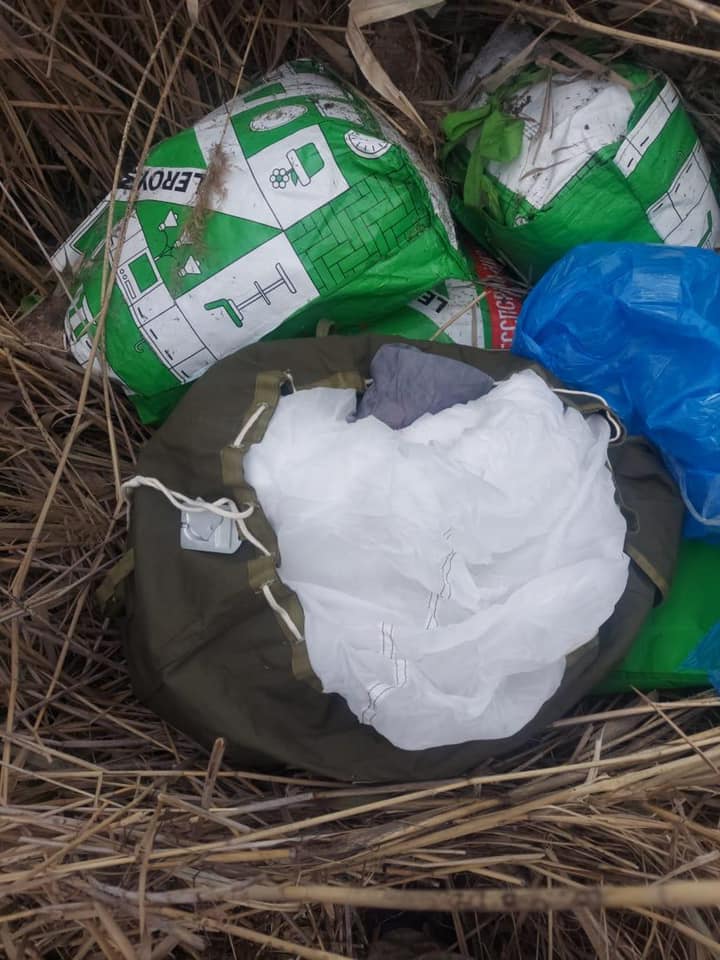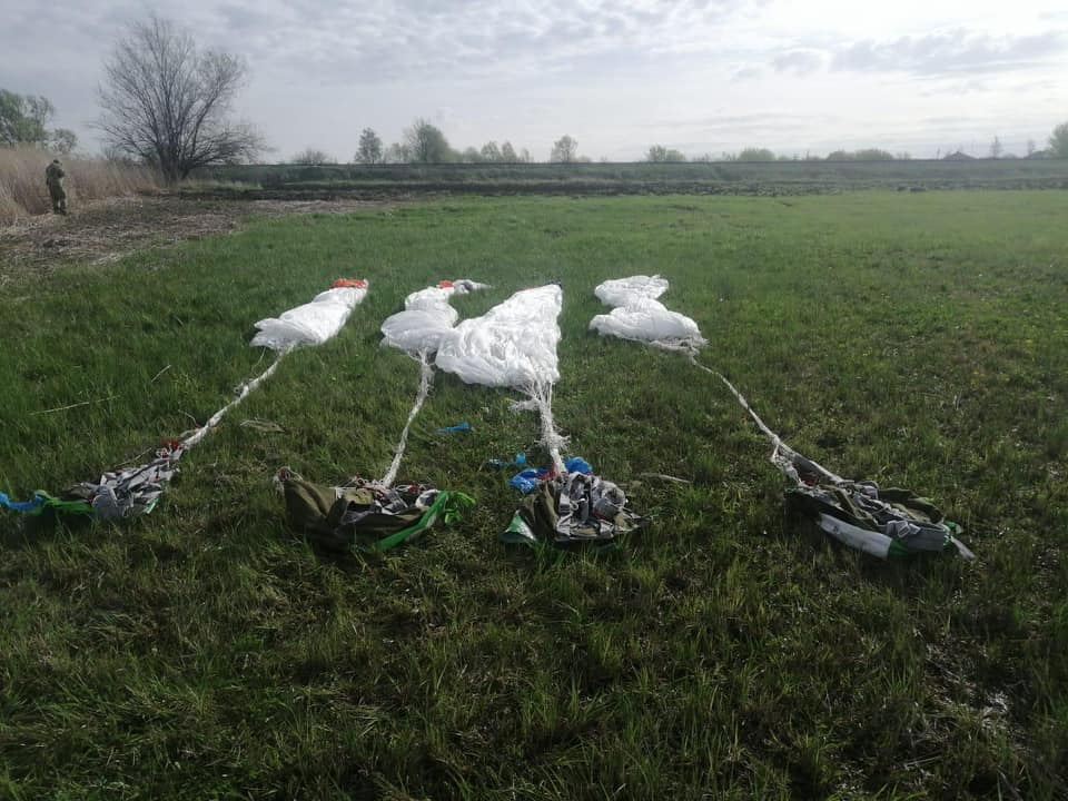 В ході подальших пошукових дій прикордонники виявили чотири сумки. Вони знаходилися в очереті неподалік від державного кордону. Оглянувши знахідку, правоохоронці виявили в ній чотири парашути, які згодом передали співробітникам компетентних правоохоронних органів України.