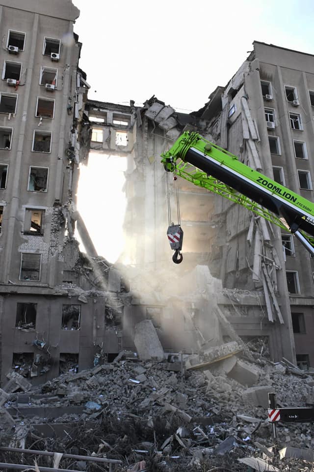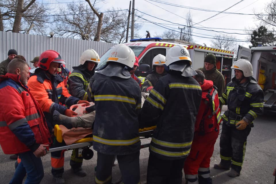 29 березня близько 08:45 у м. Миколаїв внаслідок обстрілу та влучання в дев’ятиповерхову адміністративну будівлю сталося руйнування центральної секції будівлі з 9 по 1 поверхи, без послідуючого горіння.