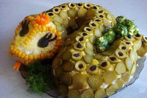 Цей салат просто необхідний на новорічному столі. Адже прийдешній 2013 рік – рік Змії!