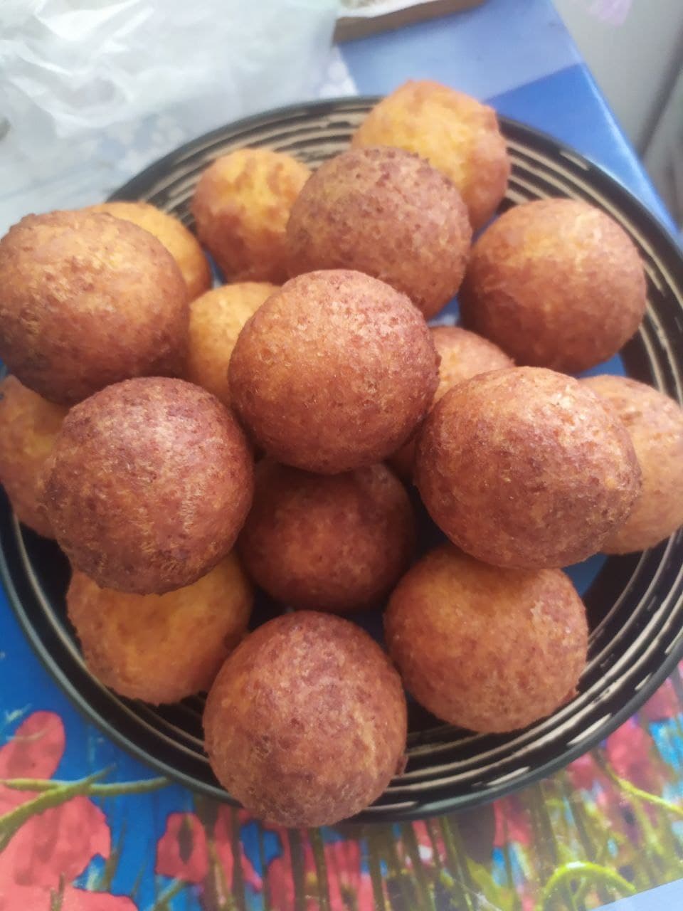 Рослинну олію наливаємо в глибоку місткість – воно повинно повністю покривати кульки. Потрібно почекати поки масло нагріється і тільки після цього викладати в нього кульки. Діставати їх слід після того, як вони стануть рум'яними. Спочатку їх потрібно покласти на серветку, щоб стекло зайве масло. Готувати їх потрібно на повільному вогні.
