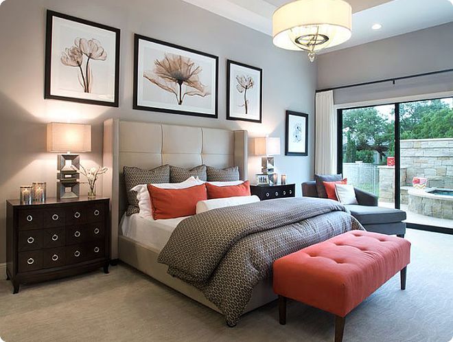 Немає певного правила, де і як розміщувати картини в спальні. Це може бути як над узголів'ям, так і на інших стінках.