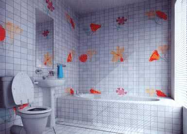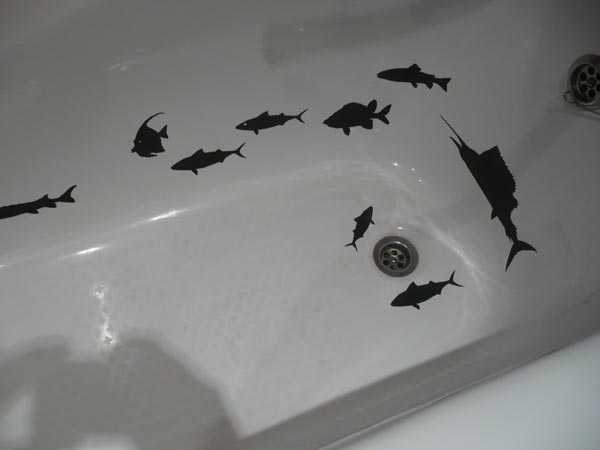 Замість наклейок можна використовувати трафарет і фарби. З їх допомогою можна прикрасити не тільки стіни, але і саму ванну.