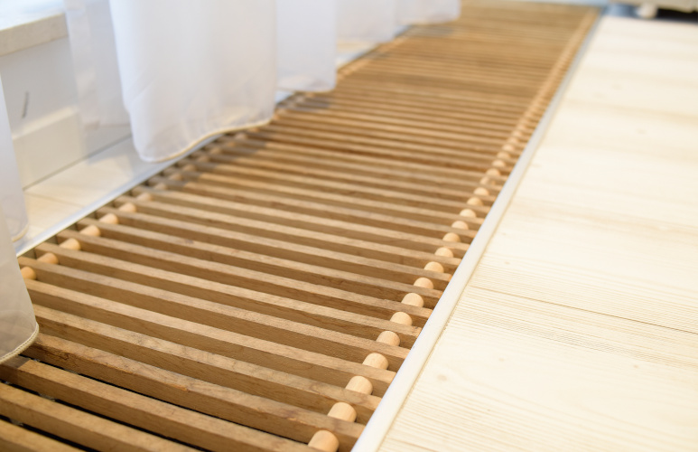 У такій ситуації перевіреним і ефективним рішенням опалення з високими декоративними якостями є канальні конвектори - унікальна форма радіатора, прихованого під підлогою. На його поверхні є лише декоративна решітка для виходу нагрітого повітря. Це спосіб «опалення без радіаторів». Невіддільною частиною поверхні залишається підлогова решітка з деревини кольору паркету. Оскільки дерев'яна сітка поставляється незабарвленою, її можна фарбувати будь-яким кольором. Також доступні анодовані алюмінієві решітки.