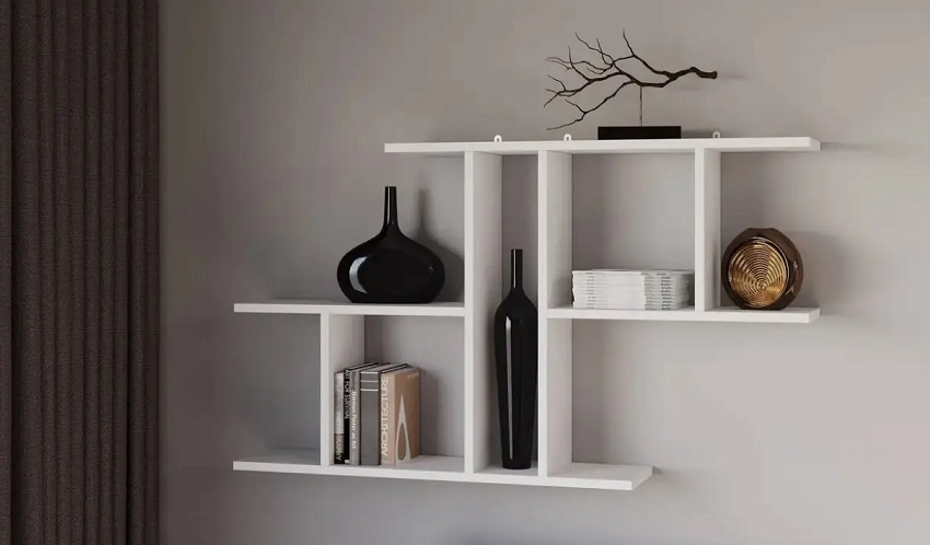 - настінні полиці незвичайних форм, які мають достатньо великі розміри, чудово підходять для створення оригінального дизайну будь-якої квартири чи будинку. Вони дозволяють перенести акцент з одного елемента на інший, наприклад, з бокового вузького вікна на дизайнерську форму полички.