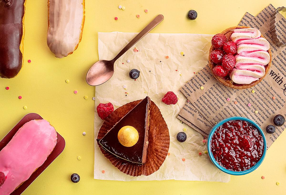 - Тістечка. Порційні десерти, які мають безліч форм та видів. Розрізняють пісочні, заварні, мигдальні, повітряні, бісквітні. Часто ласощі виконують роль тематичних солодощів.