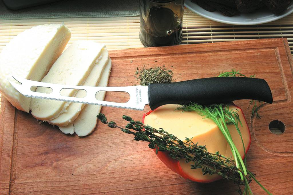 Наші ножі для сиру ретельно виготовлені з досконалими лезами, які мають спеціальну форму, що запобігає прилипанню м'яких сирів. Інноваційна конструкція леза зі спеціальними отворами, гарантує бездоганну нарізку мʼякого сиру, зберігаючи цілісність та естетичну привабливість вашого продукту.