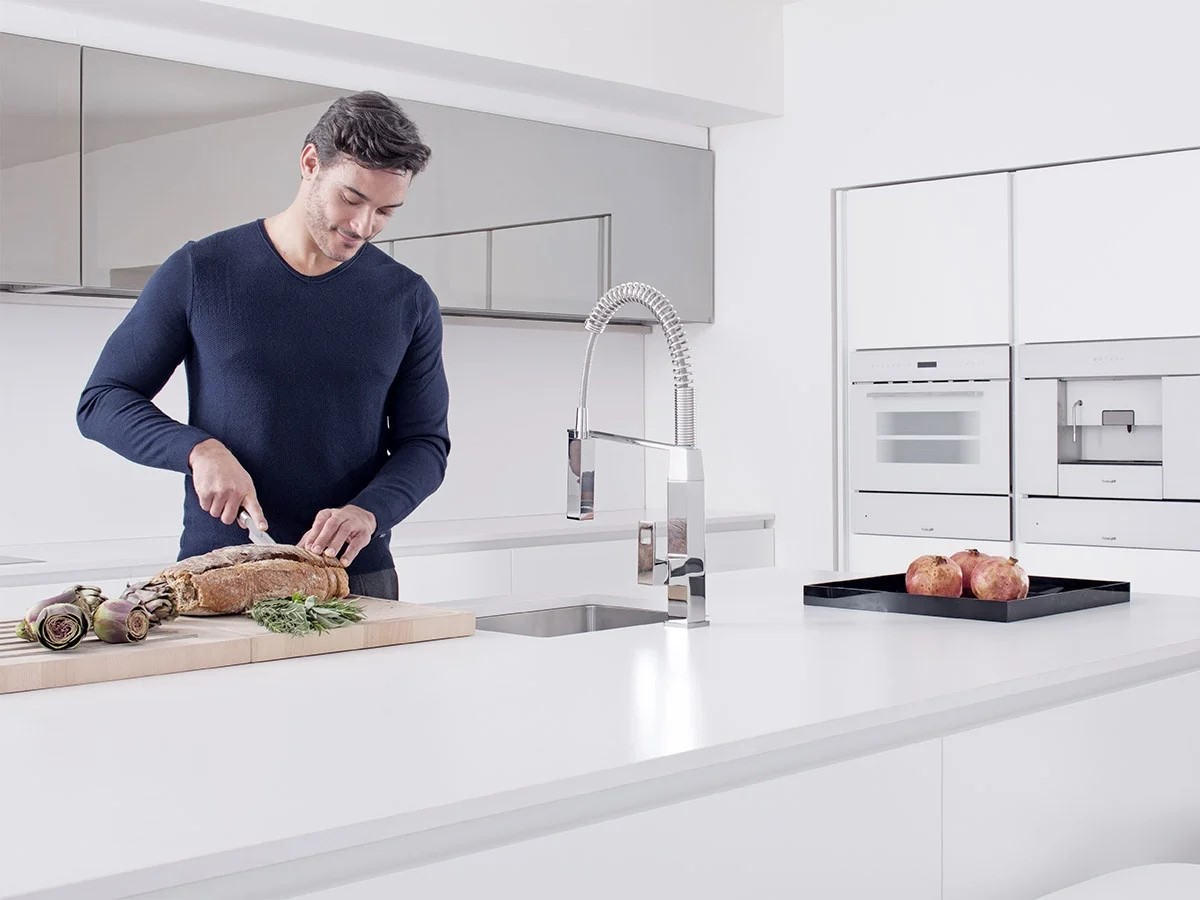 Окремі моделі Grohe мають фіксацію в кількох положеннях або магнітний тримач для повернення шланга в початкову позицію після використання. Це полегшує керування потоком і дозволяє уникнути механічного зносу при частому згинанні. Важливо враховувати, що хоча шланг розрахований на активну експлуатацію, його гнучкість не є безмежною - надмірне натягування або скручування може пошкодити внутрішній канал. Також небажано використовувати змішувач як точку опори чи тримач для мийного інвентарю.