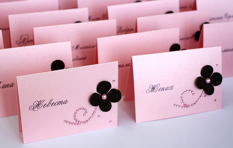 Розсаджувальні картки — маленькі, але дуже необхідні предмети. Це мініатюрні листівки, складені навпіл, які підписують і ставлять навпроти місця певного гостя.