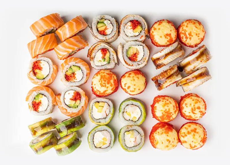 - Опис: великий сет, який включає різноманітні роли з лососем, вугром та креветкою. Ідеально підходить для великих компаній.