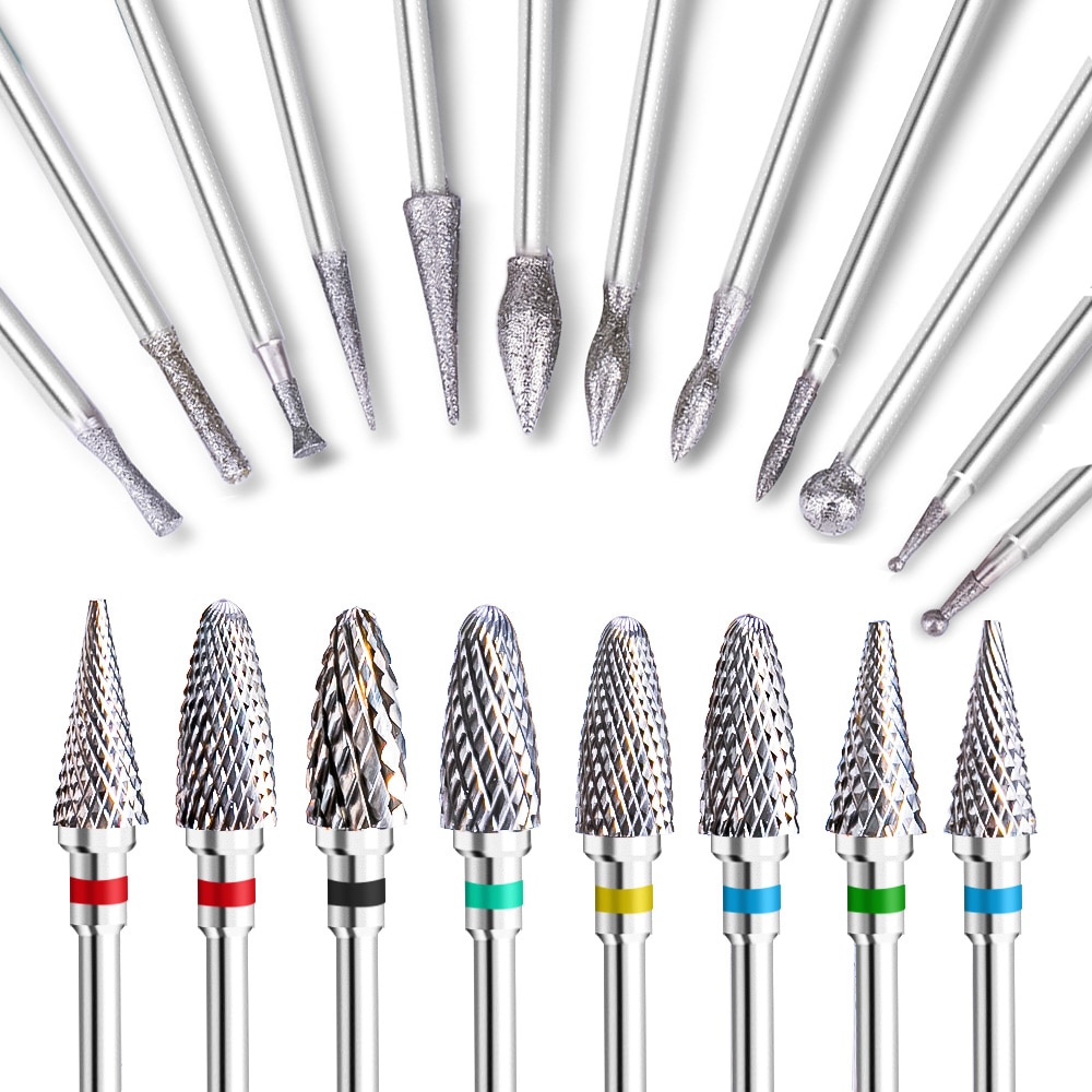 - корундова фреза у формі "оливки" або "циліндра". Використовується для шліфування поверхні штучного нігтя і підготовки до покриття;