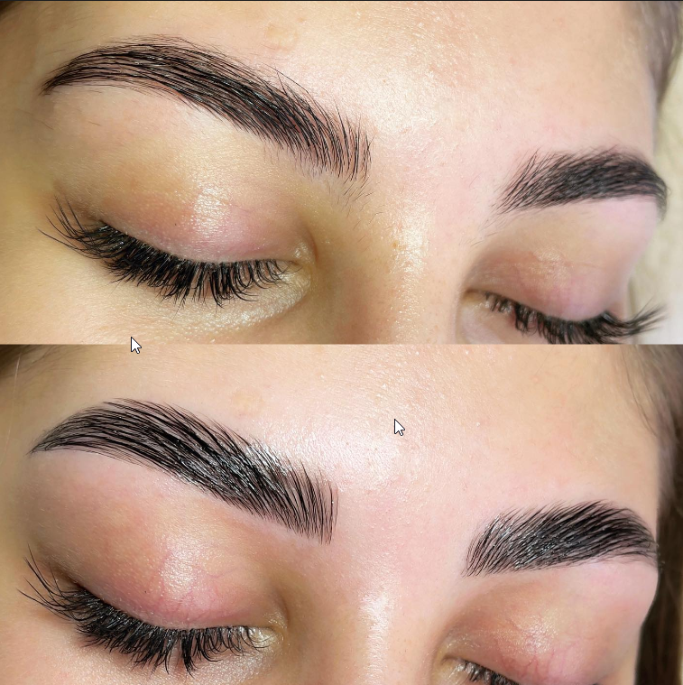 ● Волоскова техніка передбачає вимальовування кожного волоска окремо паралельними лініями однакової товщини або вільнішими штрихами різної товщини для імітації природного росту волосся. Дана техніка підійде тим, у кого рідкі та тьмяні волоски. Перевагою такого виду перманентного макіяжу є його природність та стійкість, ефект триває аж до 3 років.