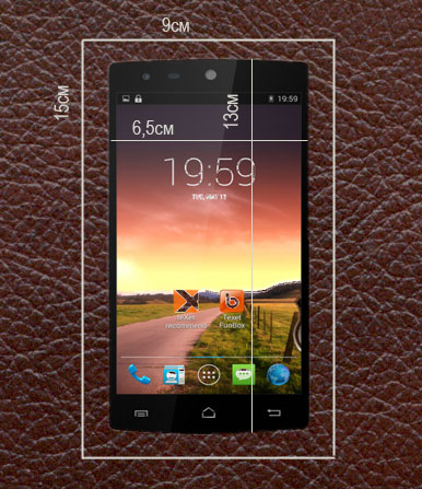 Відрізаємо від сумки частину шкіри. Потім відокремлюємо шкіру від підкладки. Коли шматок шкіри підготовлений, беремо наш телефон, докладаємо і вирізаємо заготівлі для майбутнього чохла. Деталі повинно вийти дві. При вирізанні робимо припуски по периметру на 0,5 см. Не робимо припуску тільки у верхній частині майбутнього чохла.