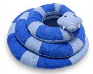 Ось яку м'яку іграшку-змію, символ прийдешнього року, можна зшити з досить щільної тканини: флісу, фетру тощо, а якщо зробити її великого розміру, то вийде навіть декоративна диванна подушка. Тим більше, що шиється вона досить просто.