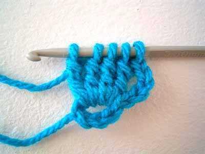- Через 5 петель, присутніх на гачку, простягаємо робочу нитку, в результаті чого на гачку виходить 1 петля.