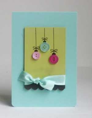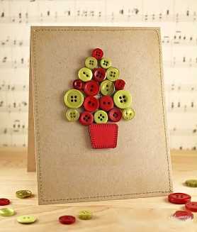 Досить елегантно виглядає листівка з ялинкою й зі звичайних гудзиків.