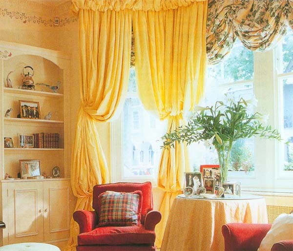 Цей спосіб підходить для фіранок, що складаються з двох полотен. Кожне з них стягуємо декоративним шнуром на відстані, рівному висоті полотна, від низу до підвіконня. На рівні підвіконня закріплюємо з боків кронштейни та чіпляємо на них кінці шнура. Вийдуть об'ємні "ліхтарики".