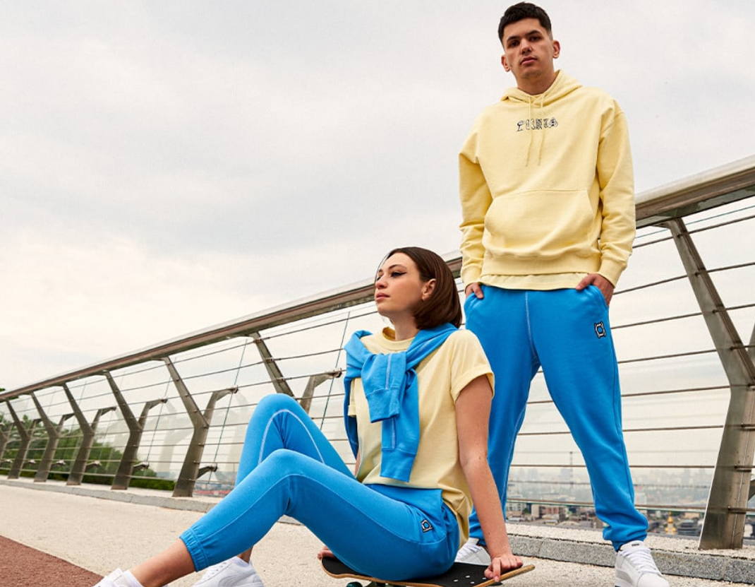 UKRAINE COLLECTION вийшла під гаслом «Незламні та незалежні» у 2022 році. Вона складається з простої капсули, в яку увійшли п’ять позицій. Це жіноча та чоловіча толстовки, штани унісекс, футболка вільного крою та білі кеди Mayze Glow Women's Trainers.