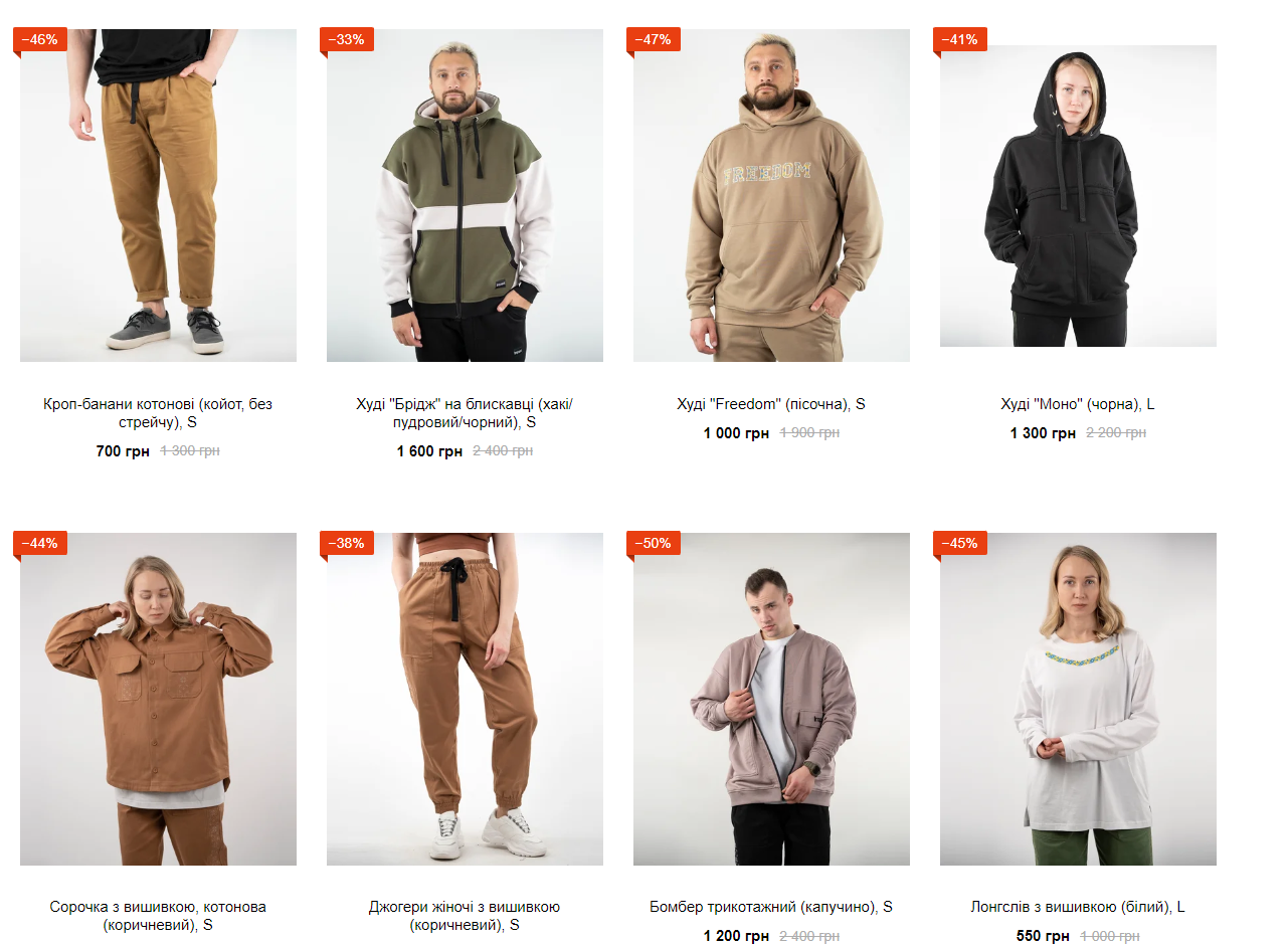 Наш одяг виготовляється з високоякісних матеріалів, але залишається доступним завдяки розпродажам.