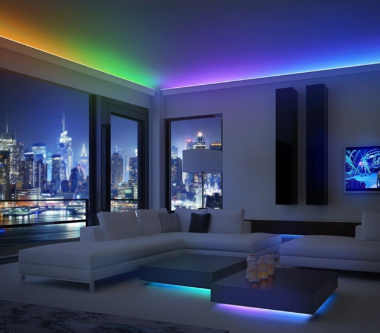 - різноманітність кольорів – різні відтінки білого світла та повний спектр кольорів RGB; це дозволяє створювати різні настрої та атмосферу в приміщенні;