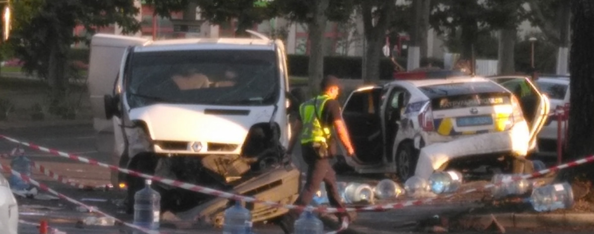 ДТП сталося вранці 30 липня на перехресті проспектів Шевченка та Гагаріна. Зіткнулися мікроавтобус Renault служби доставки води та службовий автомобіль патрульної поліції Toyota Prius, повідомляє Час Пік з посиланням на місцеві ЗМІ.