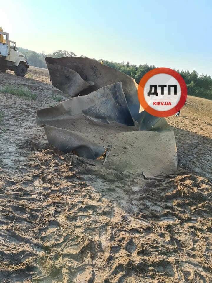 На місці пориву магістрального газопроводу високого тиску біля селища Чабани на Київщині утворився котлован, з якого вирвало шматок труби.