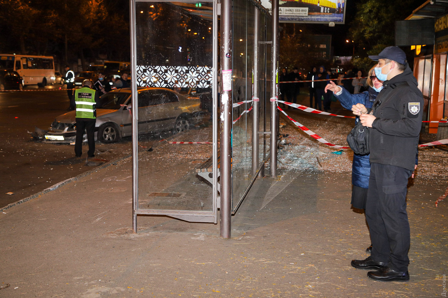 Повідомлення про те, що автомобіль "Toyota" в’їхав у зупинку громадського транспорту, на якій були люди, надійшло до поліції о 18:30. Зараз на місці події працюють поліцейські, обставини аварії встановлюються.