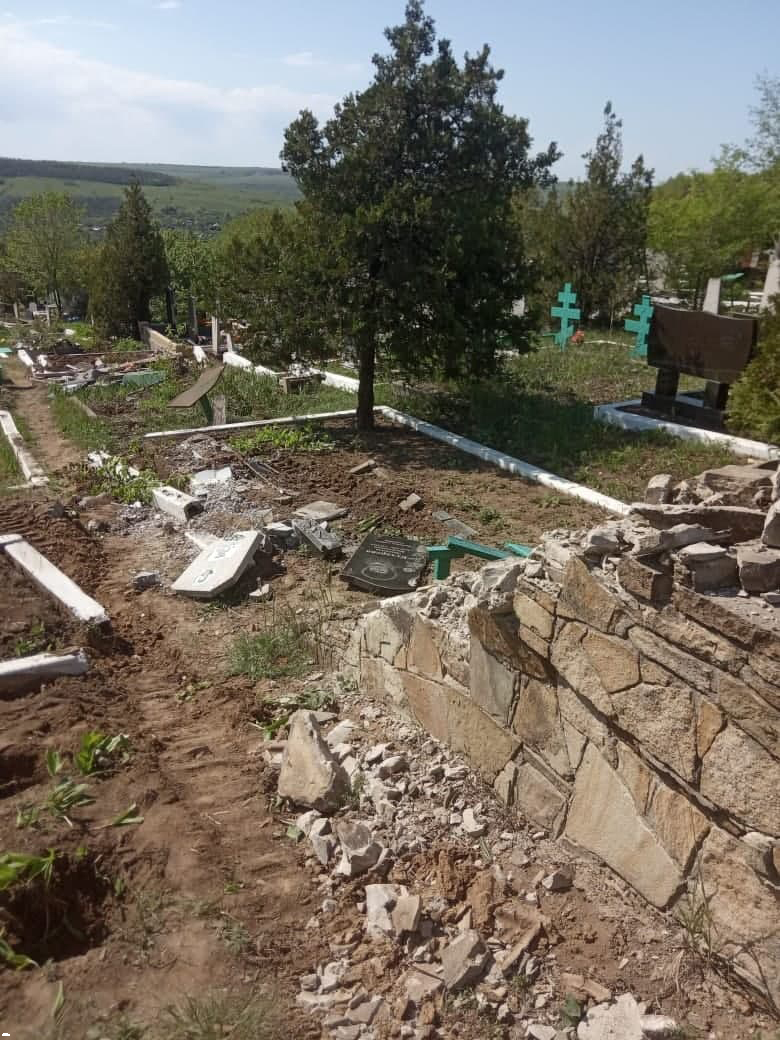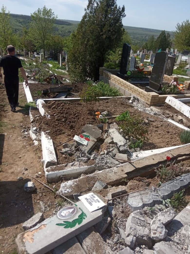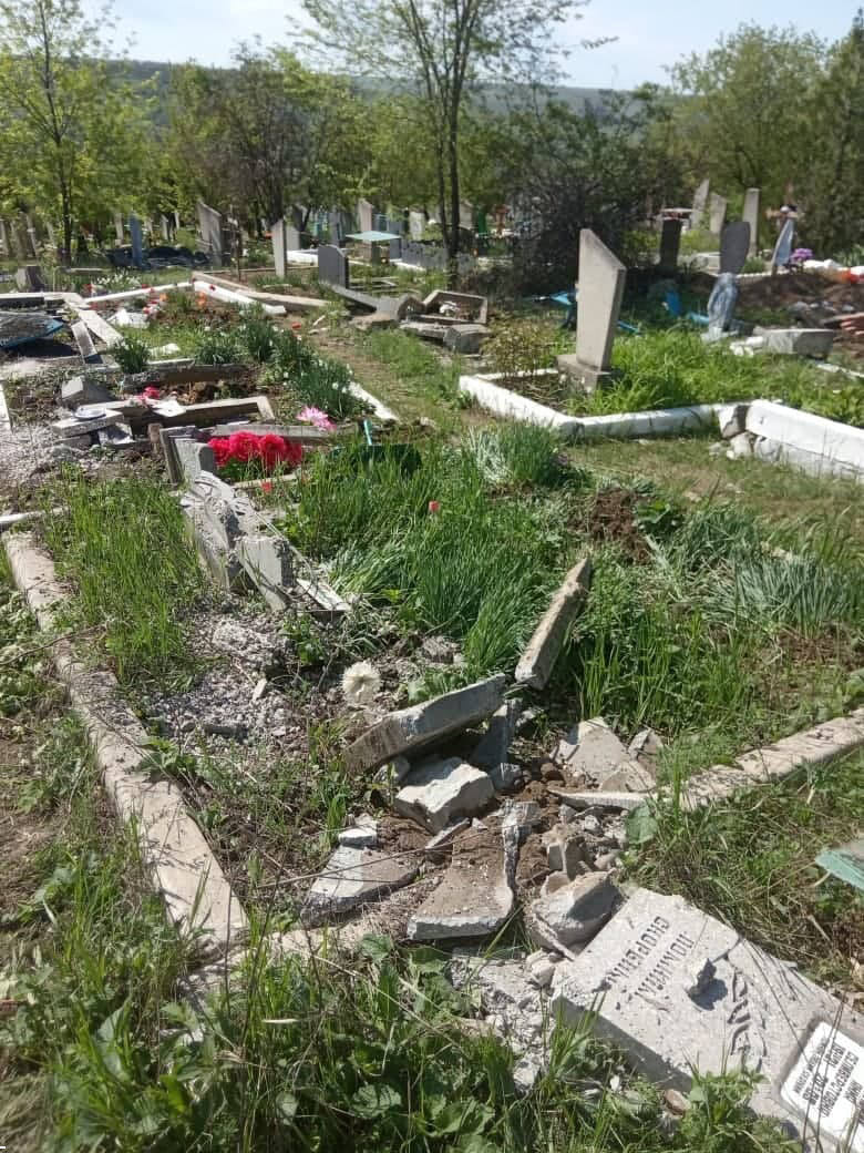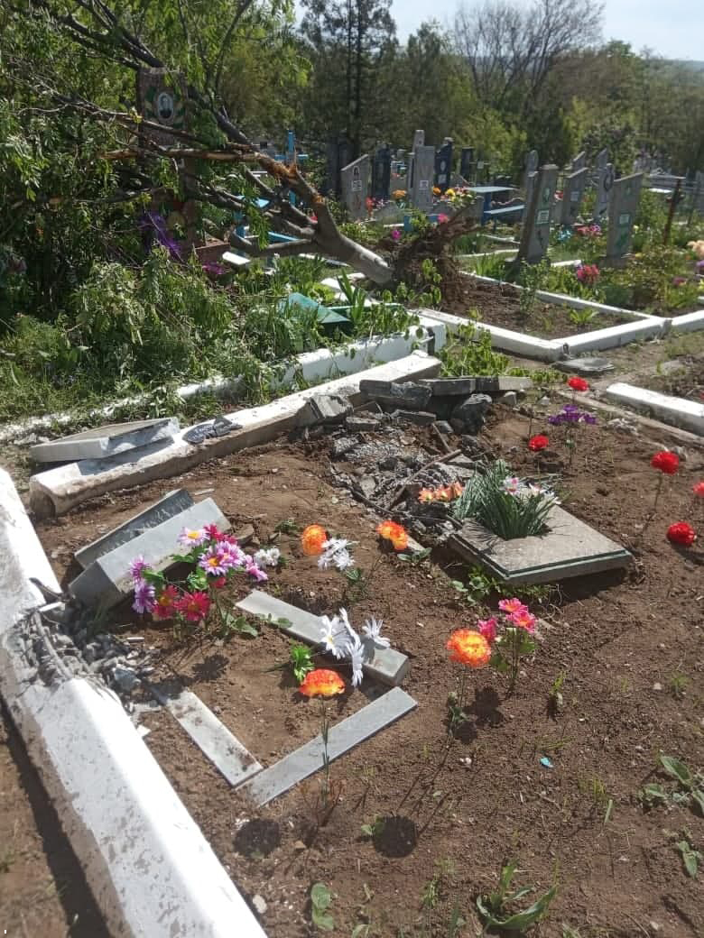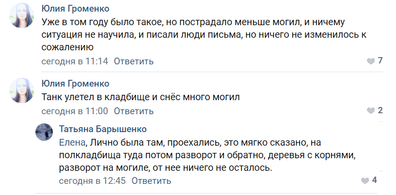 Як пишуть в соцмережах місцеві жителі, бойовики влетіли на кладовище на танку, знесли багато могил, огорожі, вирвали з корінням дерева. Як стверджується, таке відбувається вже не вперше.