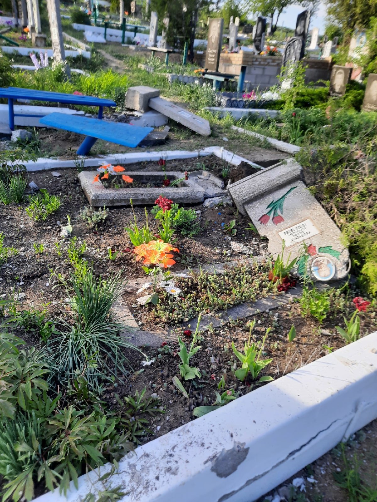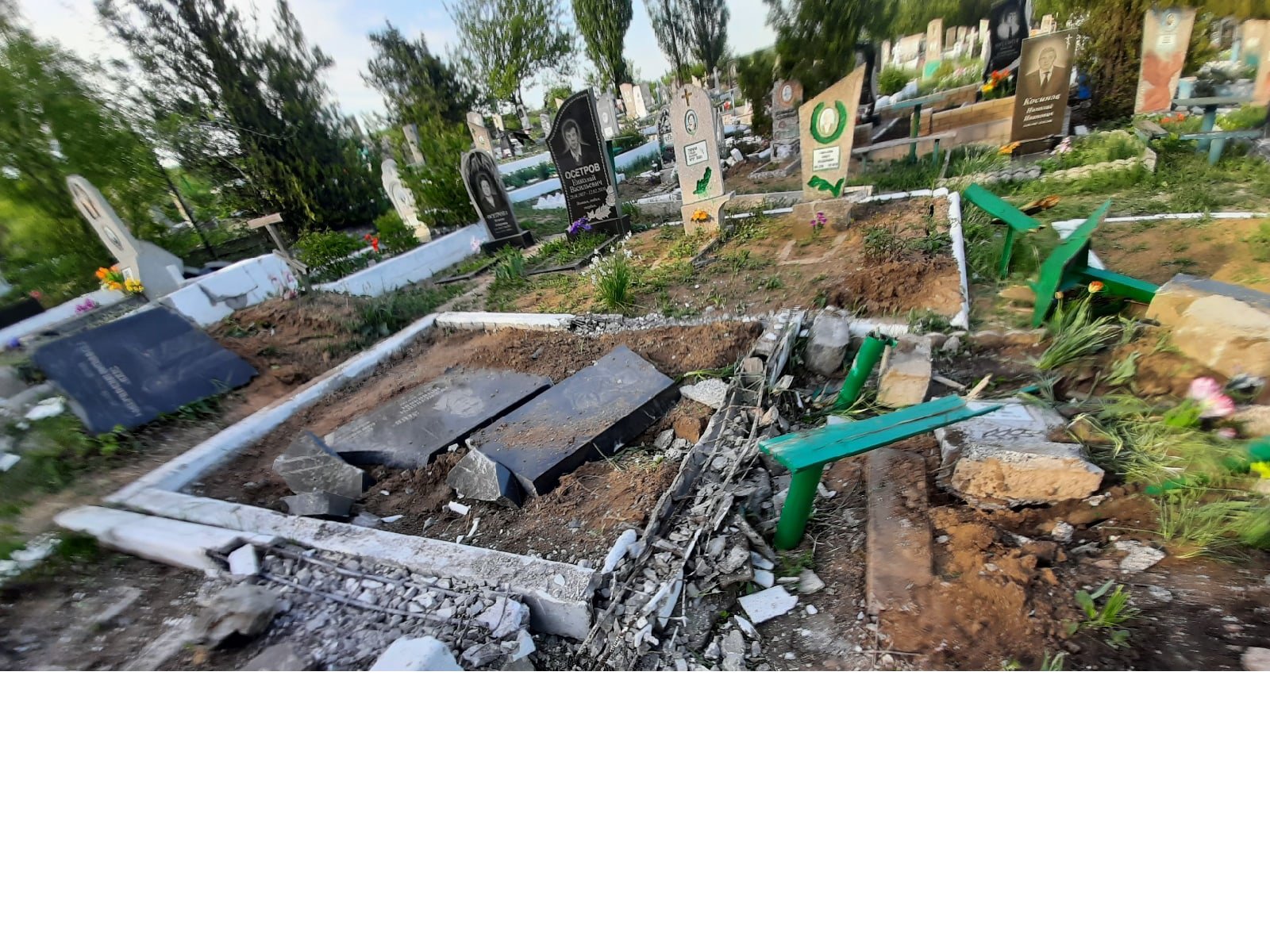 "Перевальськ: Так зараз виглядає кладовищі в районі 5-ї шахти. Місцеві кажуть, що військова техніка проїхалася прямо по могилах", - йдеться в публікації.