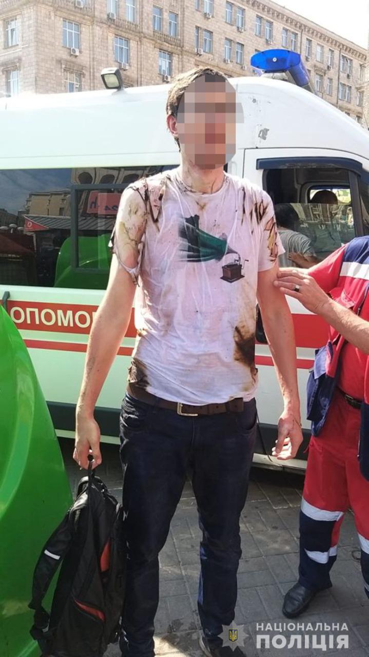 Співробітники полку поліції особливого призначення №1 побачили дії чоловіка, оперативно зреагували та викликали бригаду швидкої допомоги. Лікарі надали потерпілому першу медичну допомогу та госпіталізували до медичної установи. Його життю нічого не загрожує.