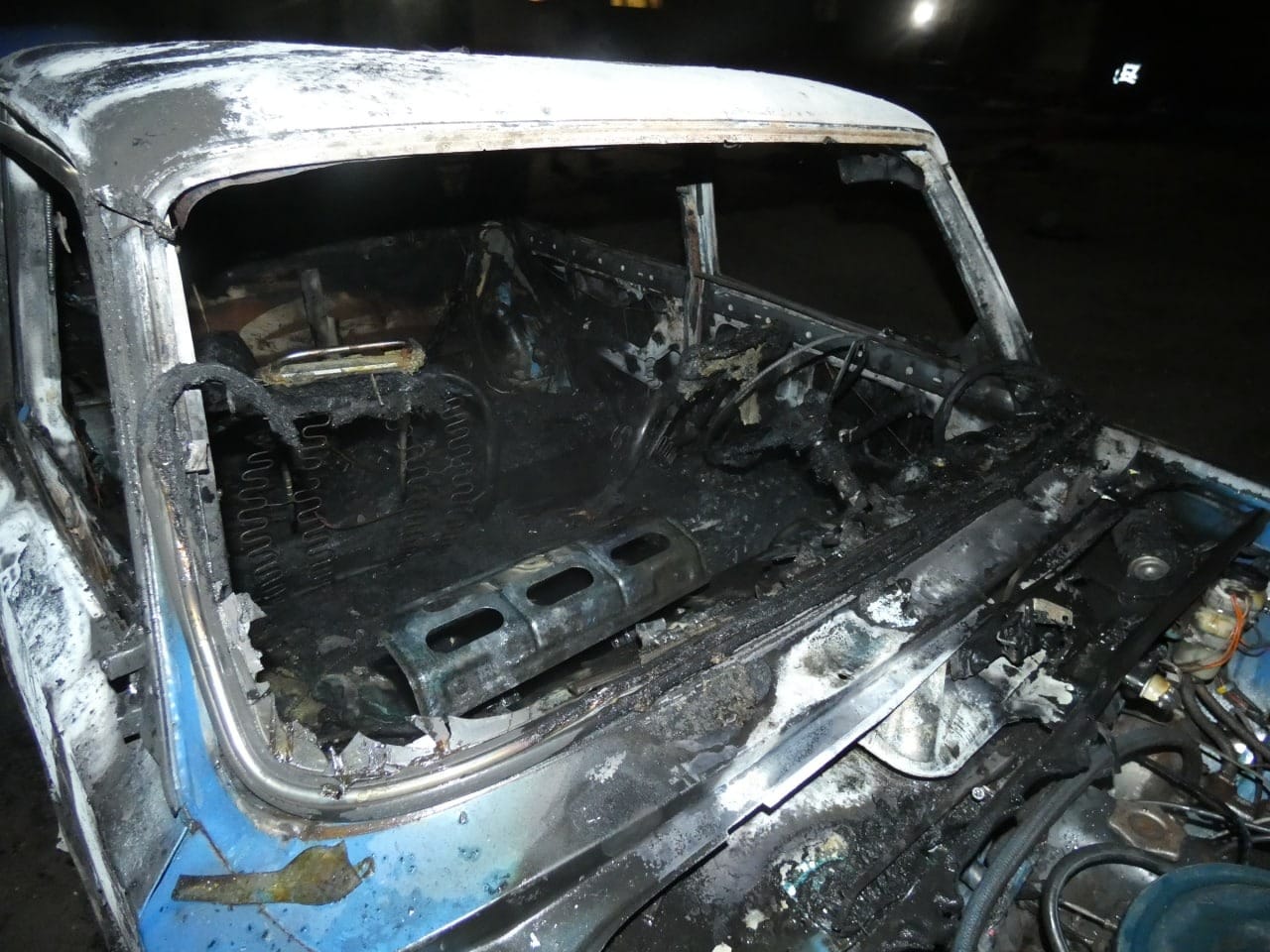 Силами рятівників о 6.05 пожежу було ліквідовано, автомобіль вигорів вщент.