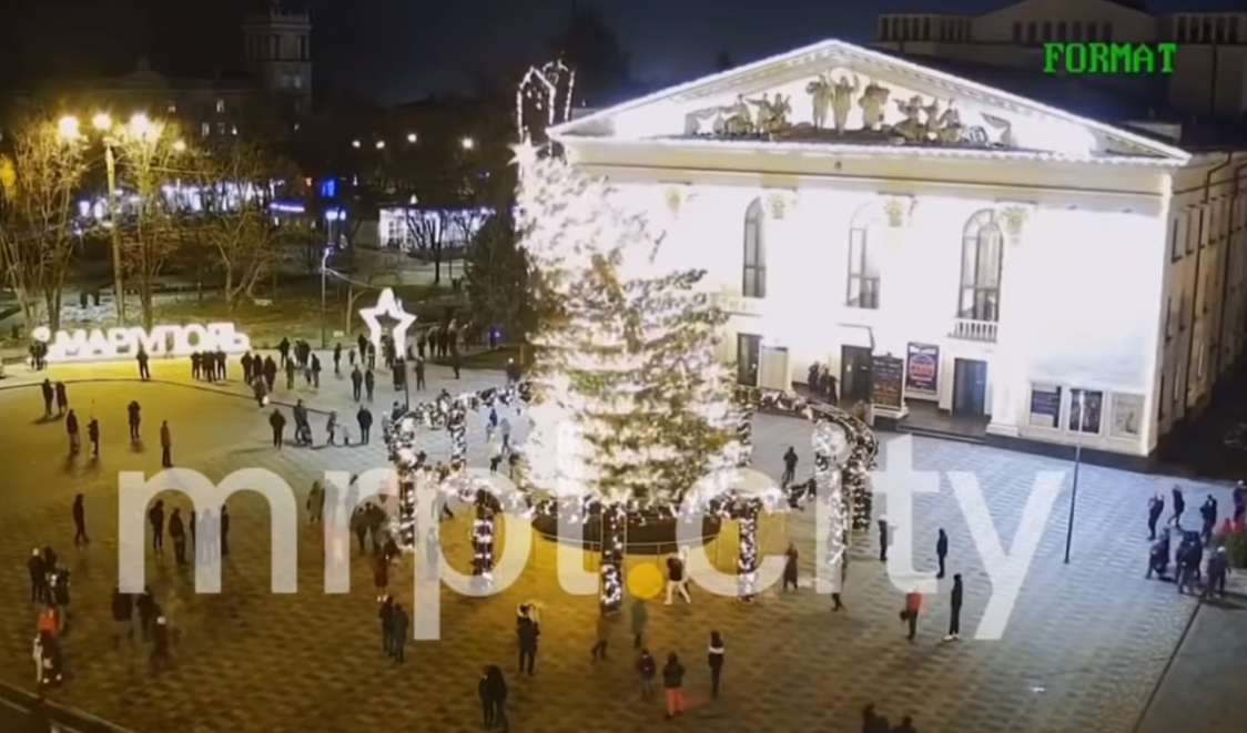 Маріупольське видання MRPL.CITY оприлюднило відео моменту падіння ялинки на Театральній площі, передає Час Пік.