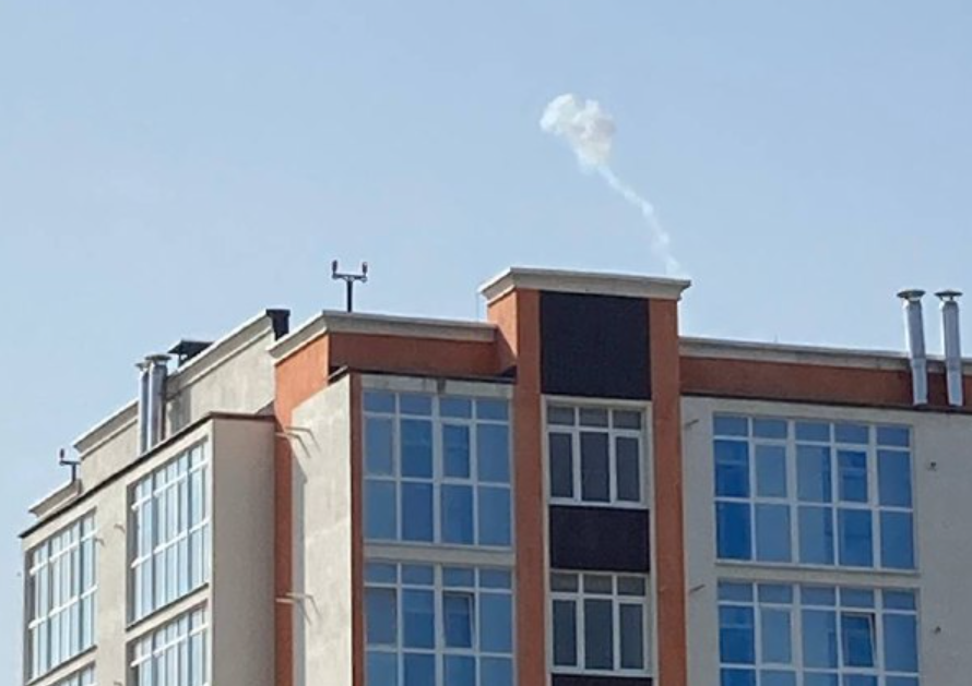 За інформацією очевидців, було два вибухи. У небі видно характерний для ППО димовий слід.