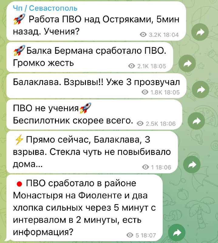 Вибухи чути у Севастополі, Балаклаві та Євпаторії. За інформацією з мережі, Севастополь атакують безпілотники.