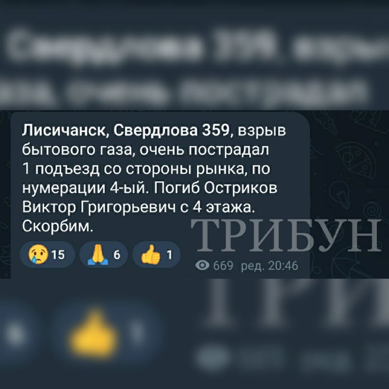 Доповнено: За уточненою інформацією, загиблий - Остриков Віктор Григорович, проживав на 4-му поверсі.