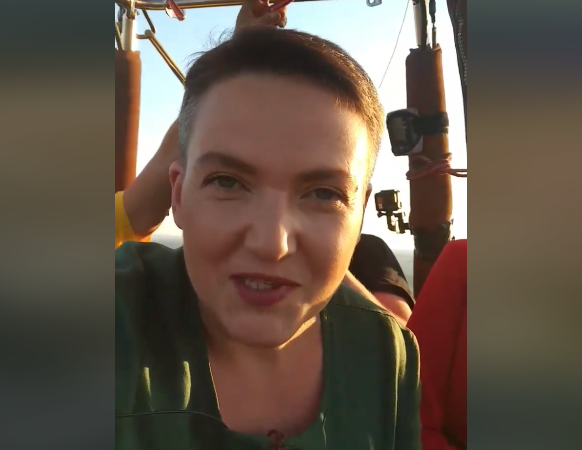 Колишня народний депутат Надія Савченко покаталася на повітряній кулі. У польоті вона записала відео з поздоровленням з Днем державного прапора та Днем незалежності.