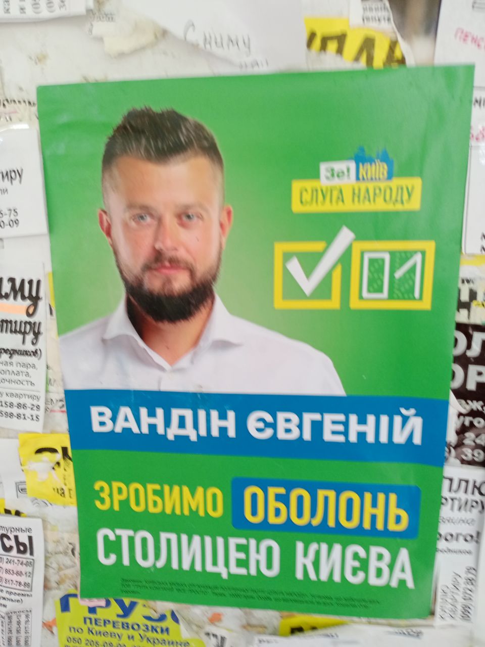 А кандидат від "Слуги народу" Євгеній Вандін зобов'язується "зробити Оболонь столицею Києва".