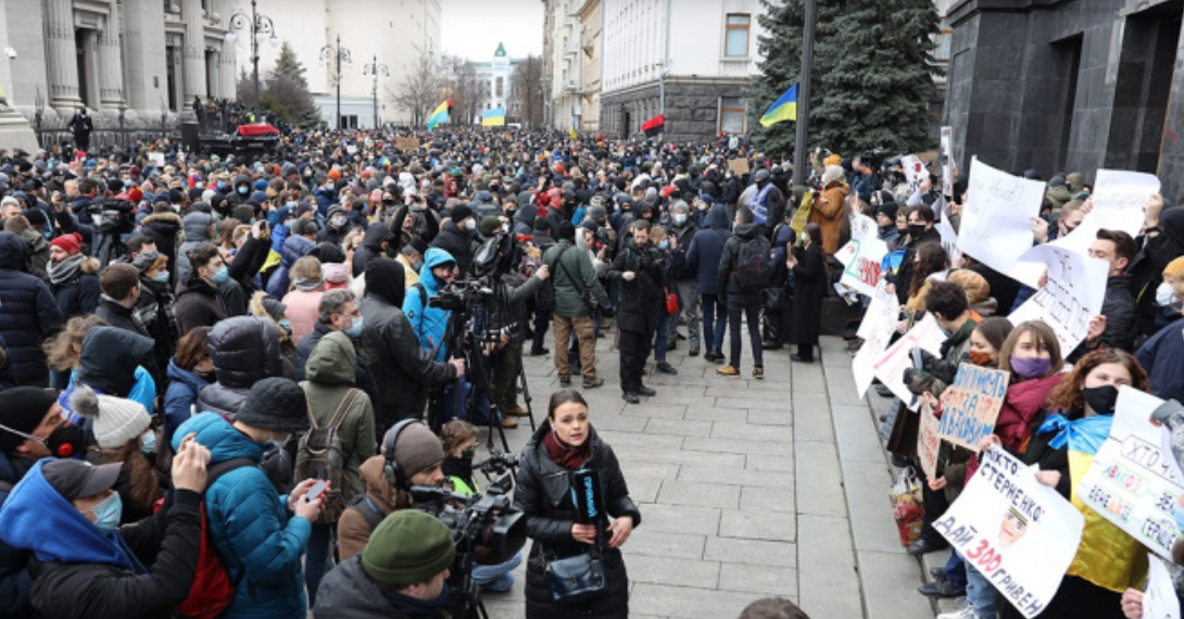 В акції на вулиці Банковій беруть участь більше тисячі людей, люди продовжують прибувати, повідомляє Час Пік.