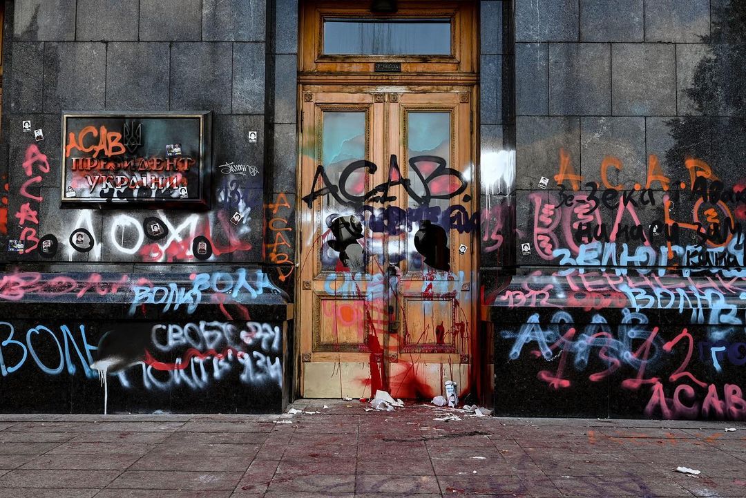 "Офіс Президента не буде віддавати жодні пошкоджені частини будівлі на будь-які виставки, оскільки не вважає ці речі об’єктами мистецтва, а ставиться до всіх пошкоджень як до доказів вандалізму", - написала Мендель у Instagram.
