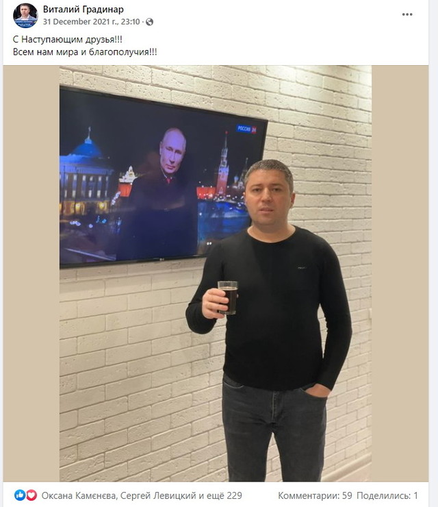 31 грудня Градинар опублікував у Фейсбуці фото, де він стоїть поряд із телеекраном, на якому транслювалося новорічне звернення Путіна.