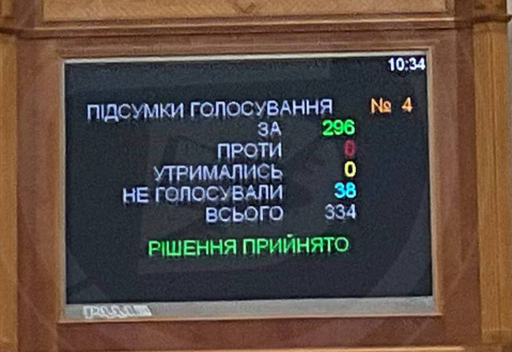 Як зазначив Железняк, за таке рішення свої голоси віддали 296 народних депутатів.